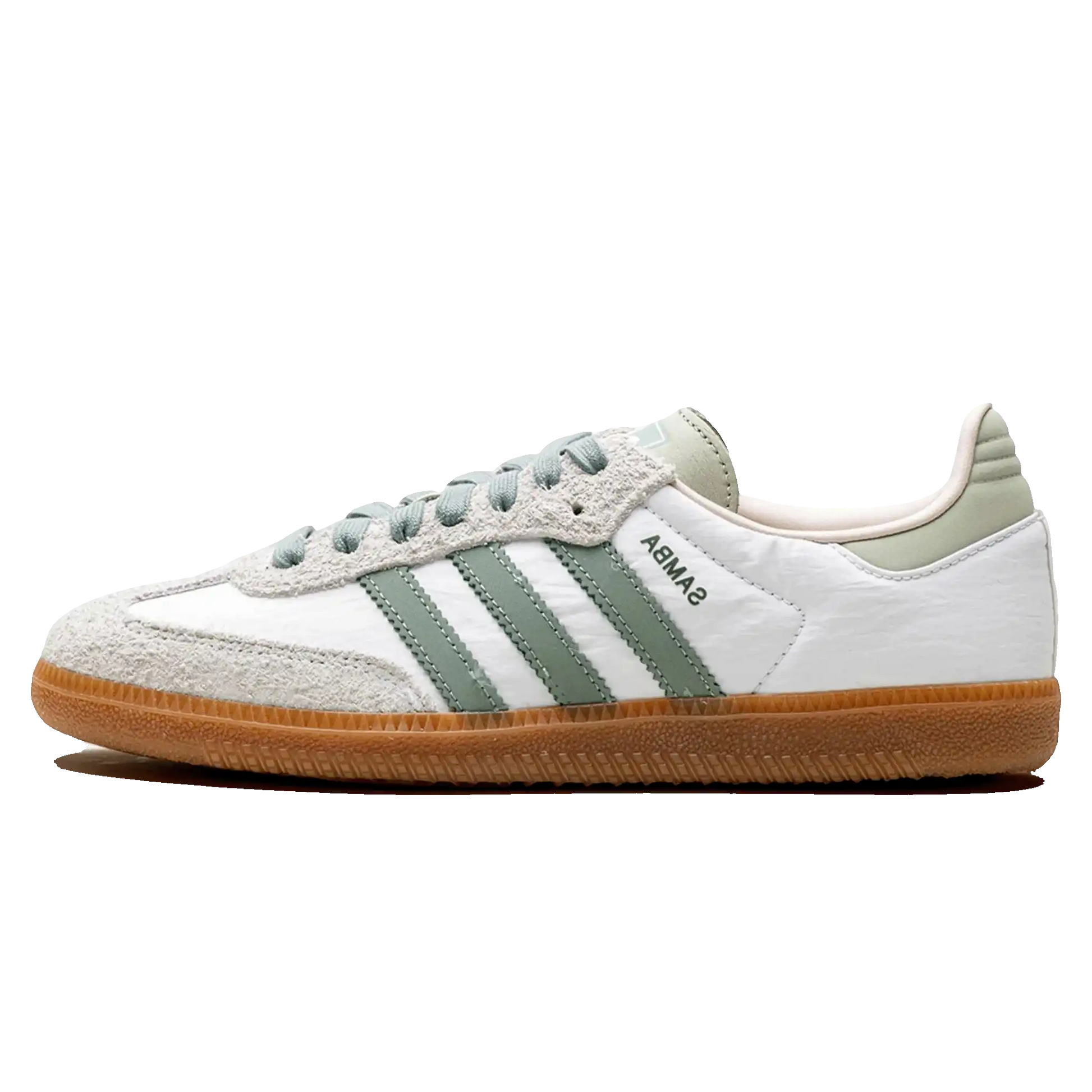 O Adidas Samba OG Feminino 'Silver Green' Branco / Verde é mais uma das colorways da grande estrela do time adidas.